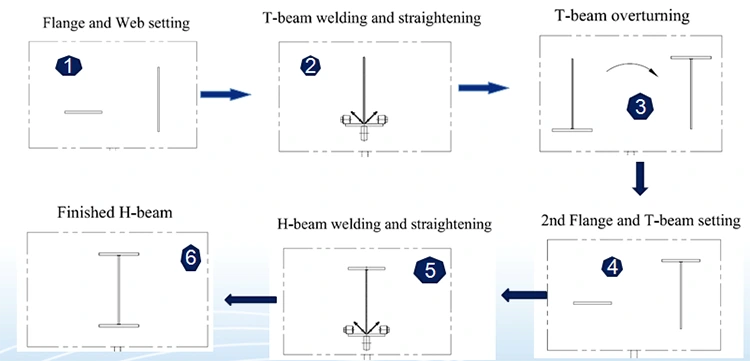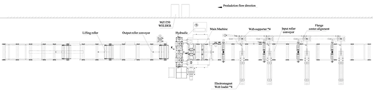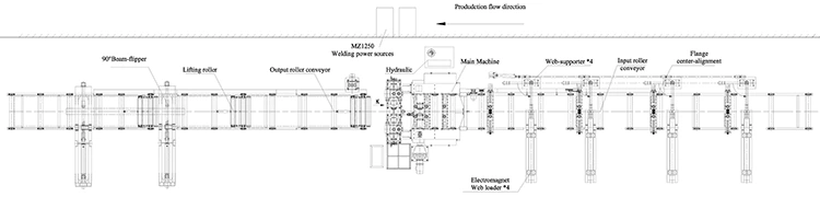 Някои клиенти може да се наложи да увеличат продукцията на производството, те се нуждаят от една заваръчна линия, за да се състои от 2 комплекта заваръчна станция. Първата заваръчна станция за заваряване на 1-ви фланец и мрежа за образуване на Т лъч, 2-рият за заваряване на заварения Т-лъч и 2-ри флайрец, за да образува Н греда.