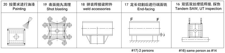 Следва диаграмата на производствения поток за производството от плочи до H лъч и окончателна проверка.