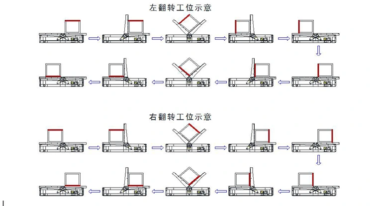 Две парчета мобилни 180 ° Хидравлични плавници се използват за превключване на работни парчета, заварени от едната страна. When working, lift the work piece away from the roller table or work-piece rack, and the reducer drives the two beam flippers to move synchronously to move the work piece to the side of the roller table or work-piece rack, and then two hydraulic cylinders drive the two arms to rotate synchronously, move the work piece to the middle of the roller table or work-piece rack after overturning, and then transport the work piece to the next process or заваряване.